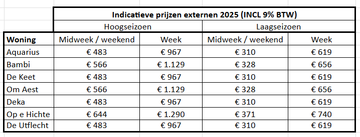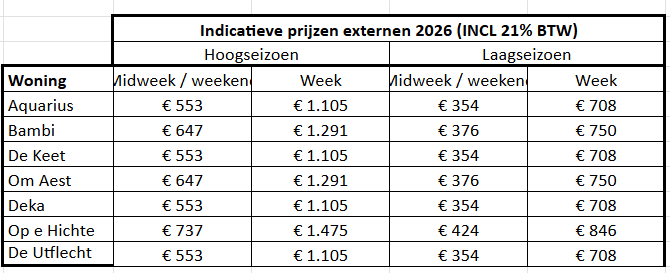 Voor een midweek geldt: aankomst maandag 13 uur, vertrek vrijdag 11 uur.